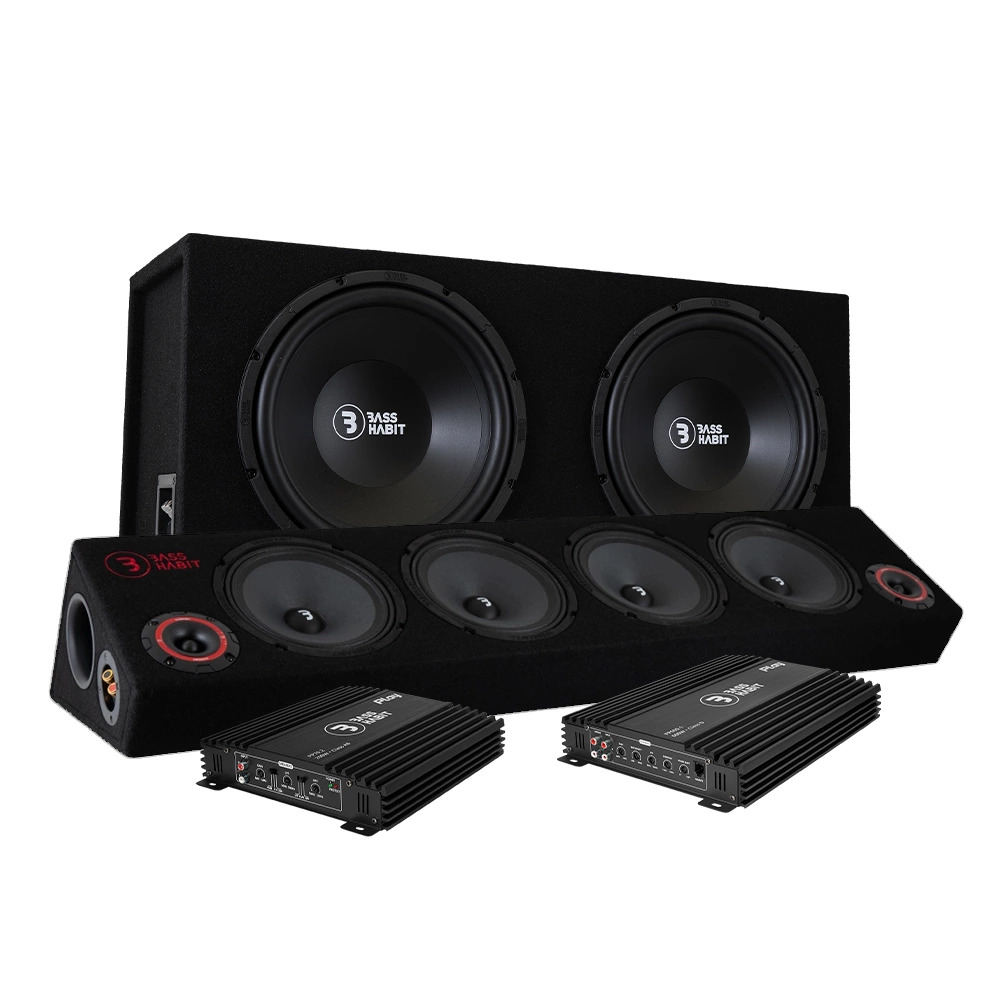 Ett raggarpaket med massa härligt ljud från Bass Habit! Raggarplanka och baslåda, samt två slutsteg. Inget behöver skruvas ihop, det är bara att slänga in det i bilen och börja koppla in slutstegen.